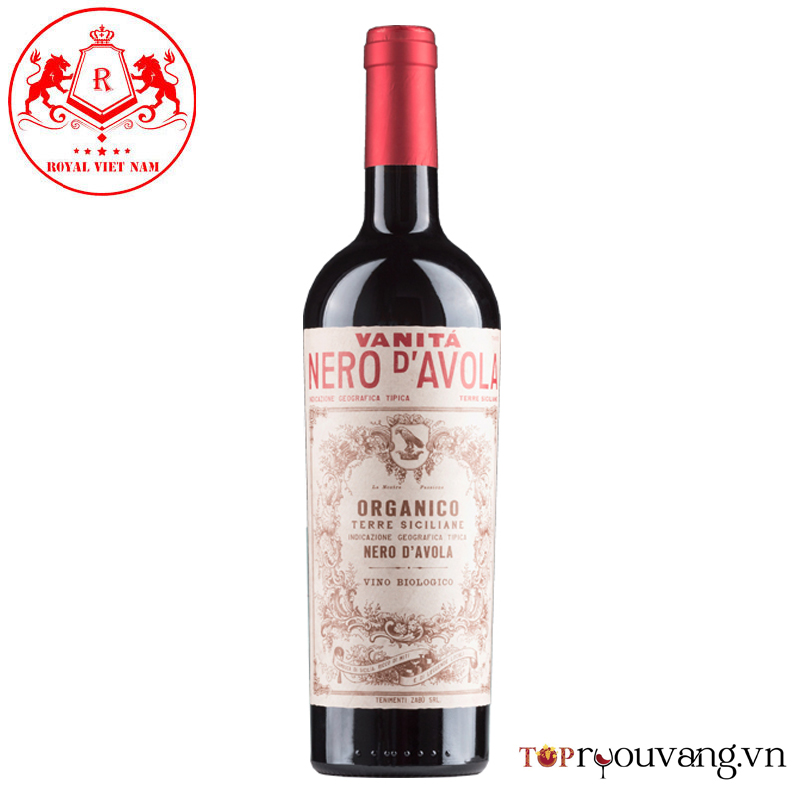 “Vanita” Nero d’Avola Organico là một loại rượu vang đỏ Ý thanh lịch, bán khô, được làm từ giống nho cùng tên được trồng tại các vườn nho Cantine Sellaro ở Sicily. Nho được thu hoạch thủ công khi đạt độ chín tối ưu. Các quy trình hữu cơ được áp dụng tại vườn nho và hầm rượu, với sự can thiệp tối thiểu. Sau khi thu hoạch, nho được phơi khô trong 7-10 ngày dưới ánh nắng nóng của Sicily và gió khô châu Phi. Quá trình này khiến nho mất đi 15-20% trọng lượng, sau đó được ép nhẹ và lên men ở nhiệt độ được kiểm soát. Sau một thời gian ngâm ủ dài, rượu được ủ trong thùng gỗ sồi Pháp trong 12 tháng. Loại rượu này được khuyên dùng với sốt mì ống, thịt nướng, các món thịt thú rừng, và phô mai chín.